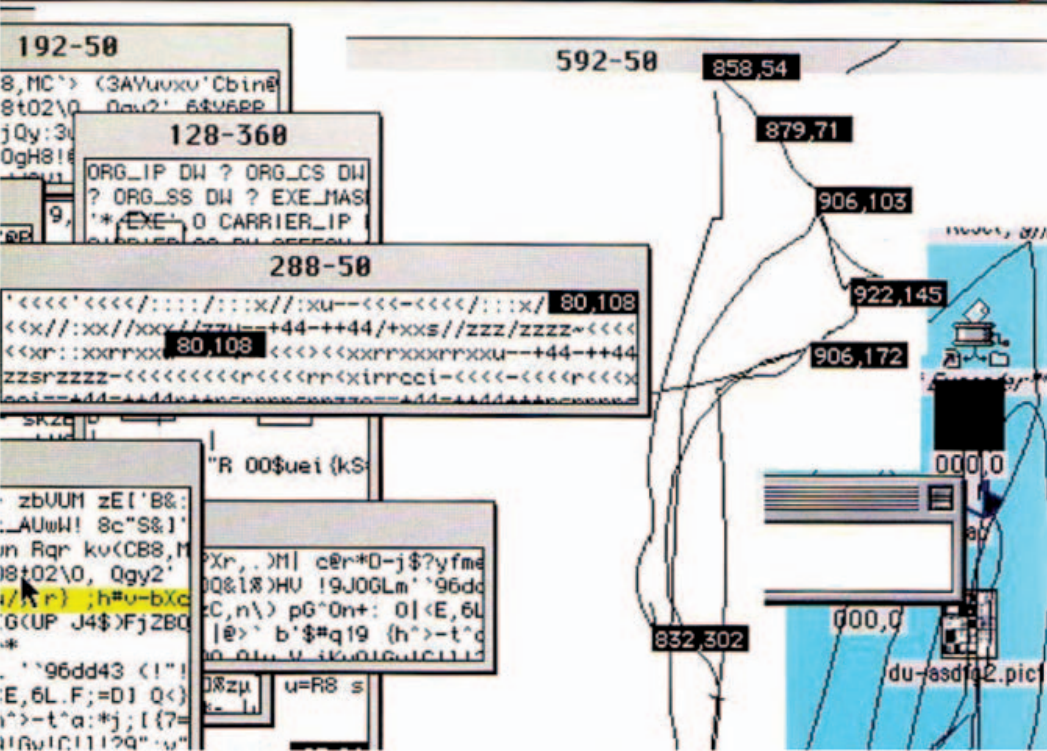 대부분의 경우에서, 기능적인 (알고리즘적) 효율성의 증강은 상징적 효율성의 쇠퇴와 나란히 간다. 여기에 ‘맥크리스탈의 법칙’이라 별명을 붙일 수도 있겠다. 미학적 정보의 증가는 정보 미학의 쇠퇴를 생산한다. 따라서 아마도 네트워크 시각화 자체는―그것이 자신의 고도로 정확하고 기교적인 수준의 세부사항을 과시한다 해도―가시적인 것의 뒤에/너머에 다른 이야기들이 일어나고 있다는 것을 입증한다. 다른 말로 하면, 재현 불가능한 어떤 것들이 있다. 그리고 컴퓨터는 이 영역으로 안내하는 우리의 가이드다.